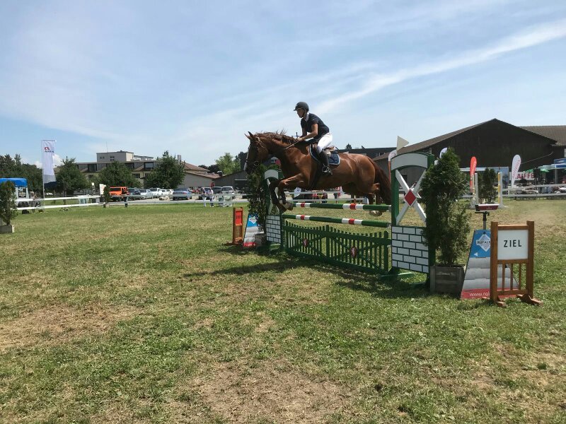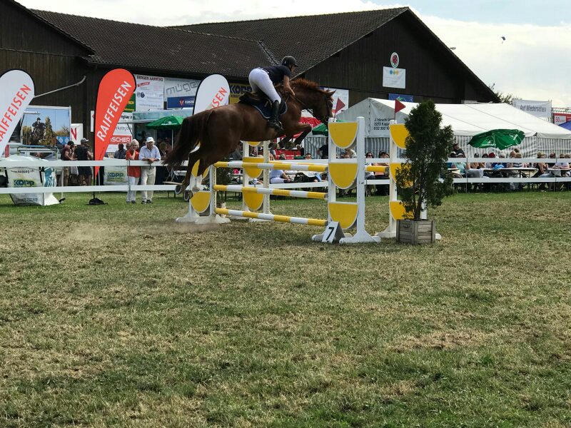 Am Sonntagmorgen war Maeva Pascal mit ihrer Stute Miala vom Heudorf am Start. Im B85 gab es leider einen kleinen Stangenfehler. Diesen Patzer machten die beiden im zweiten Umgang wieder wett und konnten sich auf dem 2. Rang im B95 klassieren.