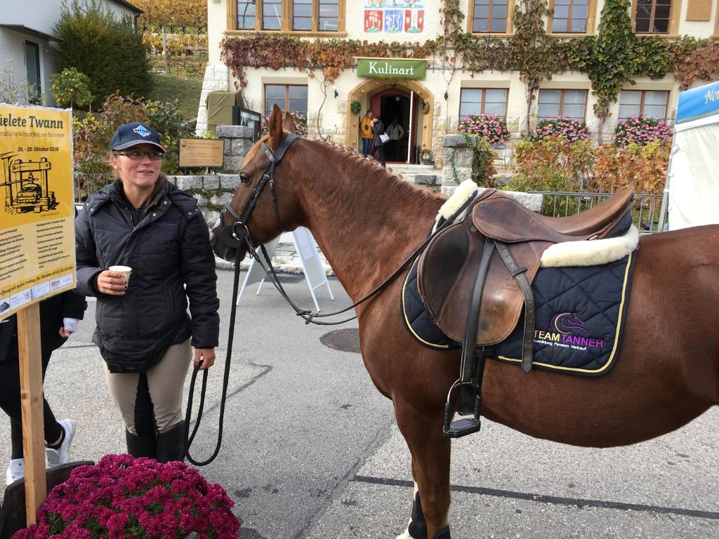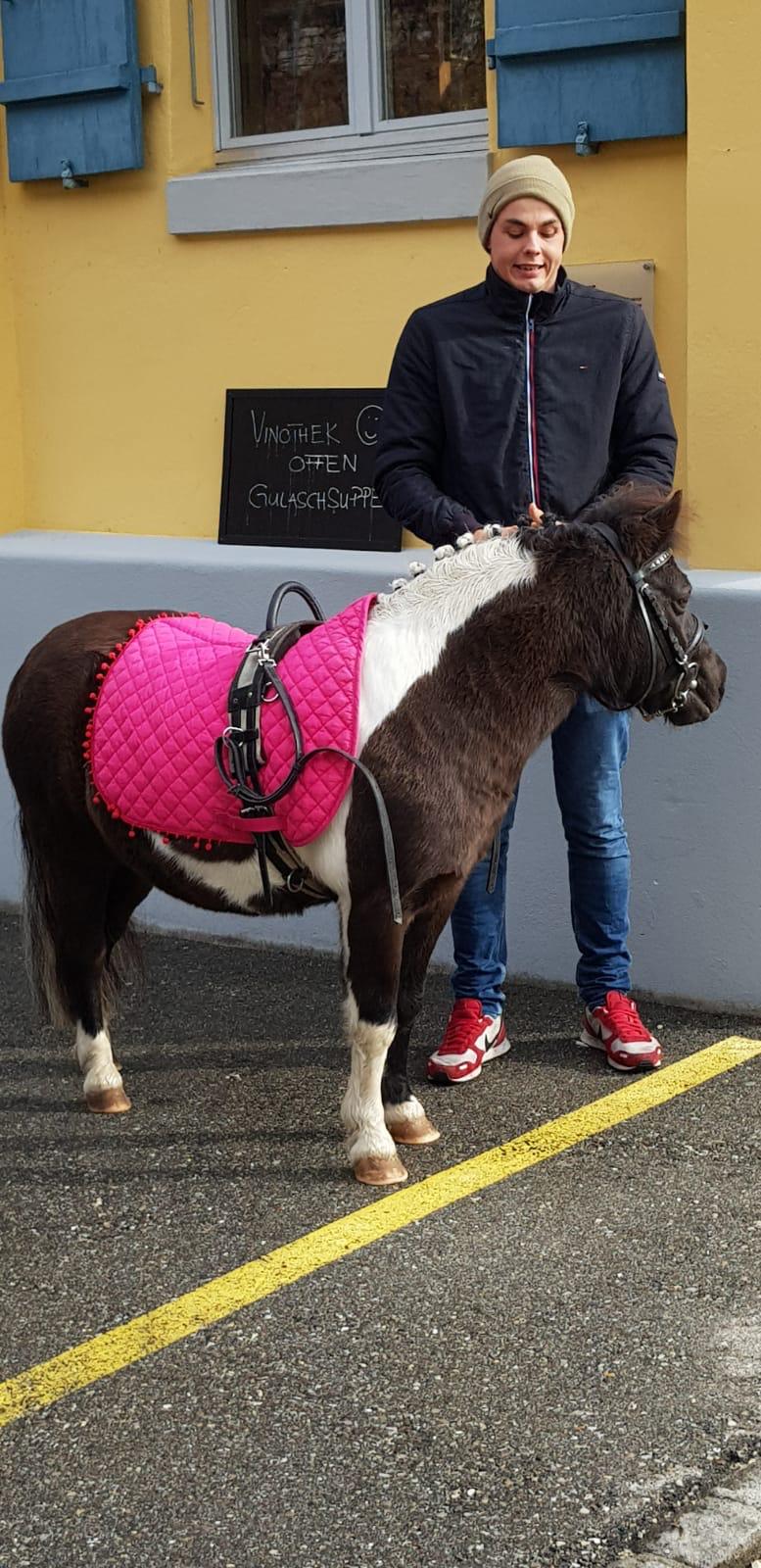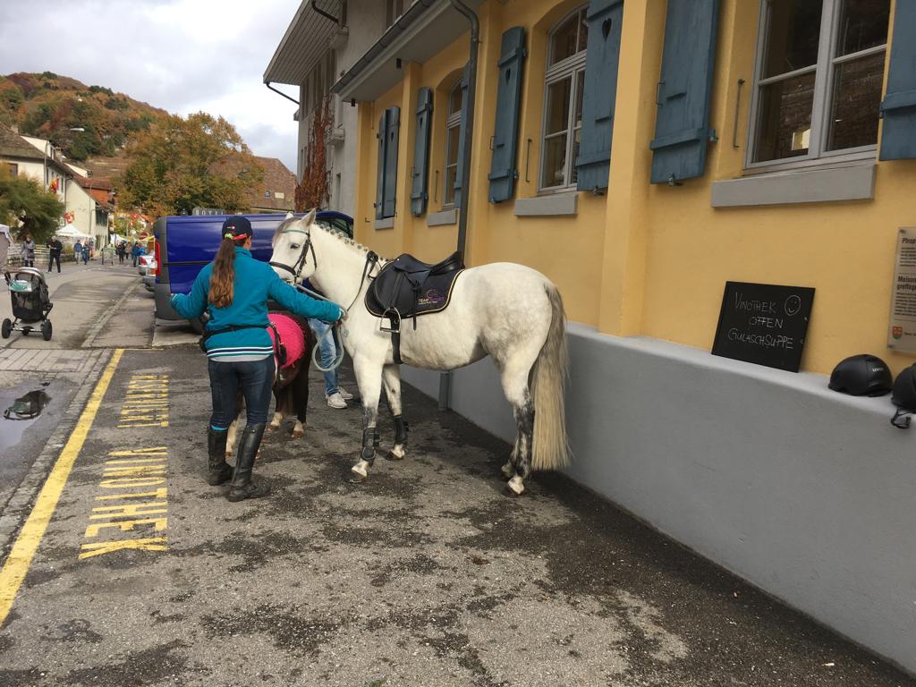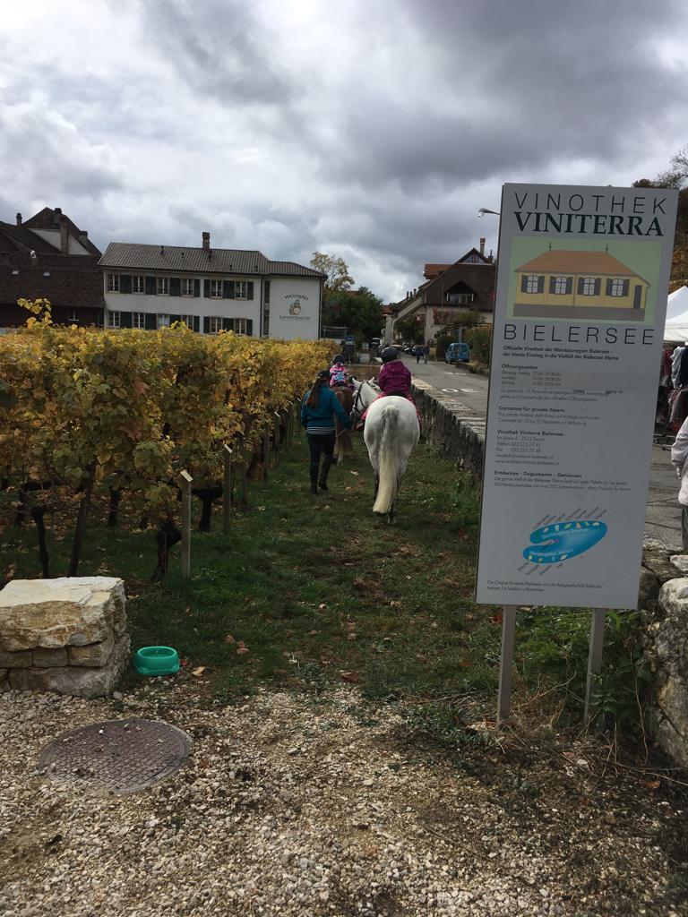 Am Sonntag wurden drei von unseren Ponys herausgeputzt und durften an die Trüelete nach Twann. Maeva Pascal und Aline Widmer haben in diesem Jahr erstmalig ein Ponyreiten an der Trüelete organisiert. Missis Carwyn, Crazy und Balista liessen trotz Wind und Regen die Kinderherzen höherschlagen. Lieb und geduldig drehte das 5er Gespann einige Runden um die Reben.