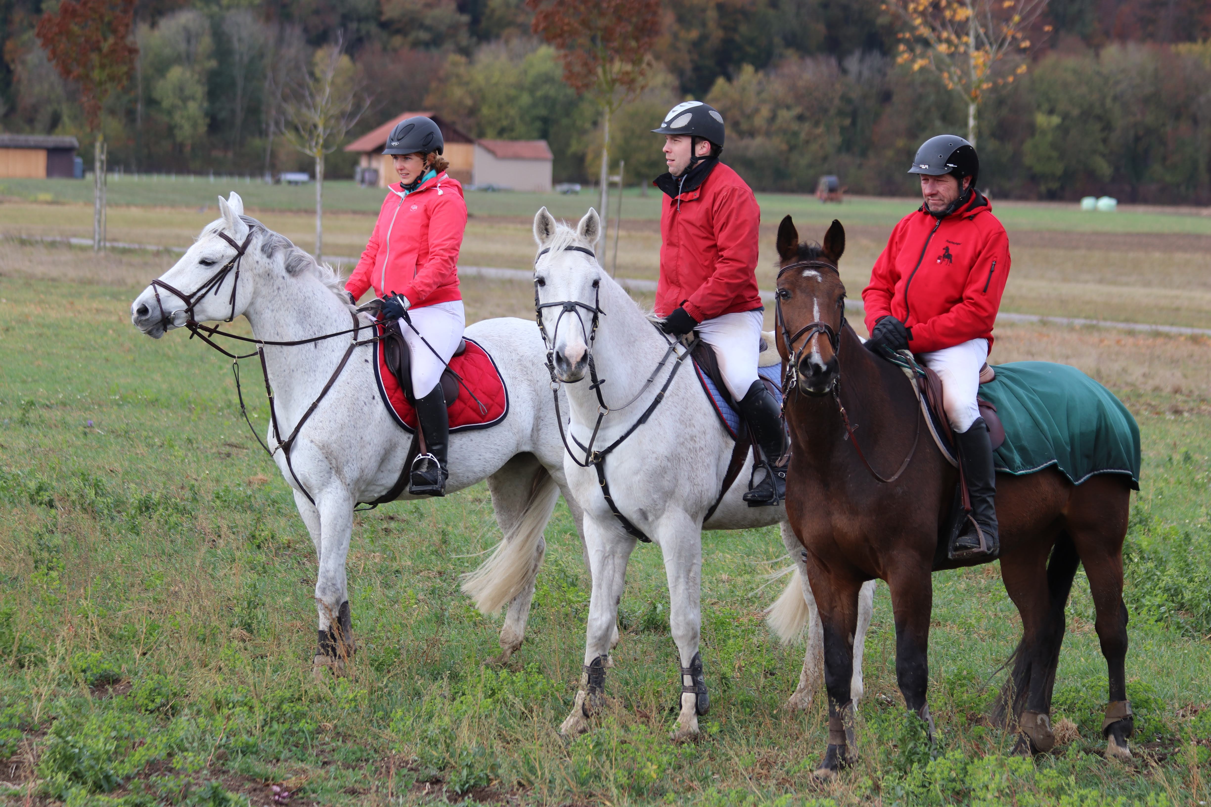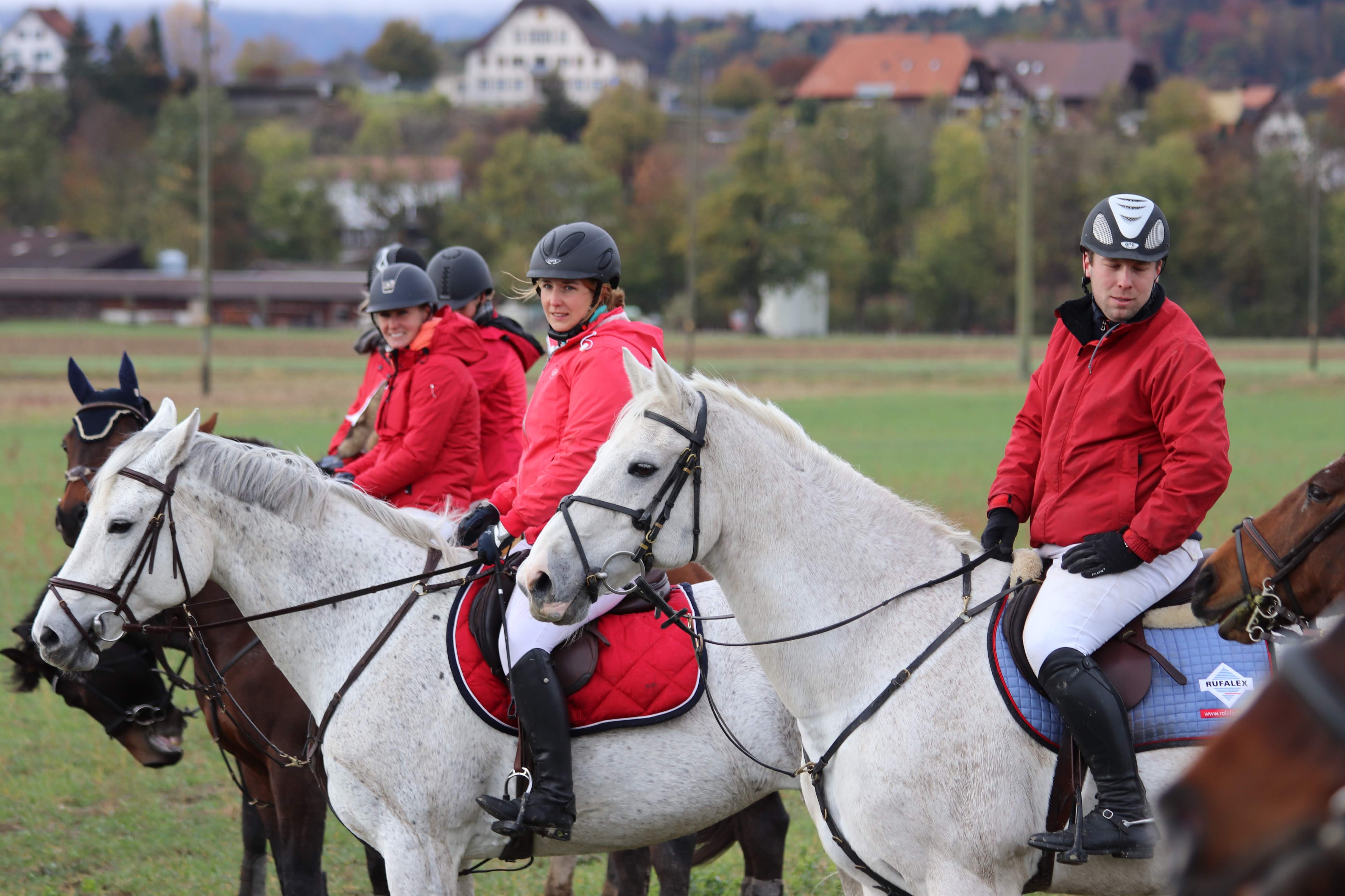 Zur selben Zeit fand in Aarberg die traditionelle Fuchsjagd statt, an dieser waren Jakob Rufer und Melanie Winkelmann mit ihren Schimmeln vertreten. Unter dem Motto «reite einen Schimmel und du kommst in den Himmel» haben die beiden eine lustige und schöne Jagd erlebt.