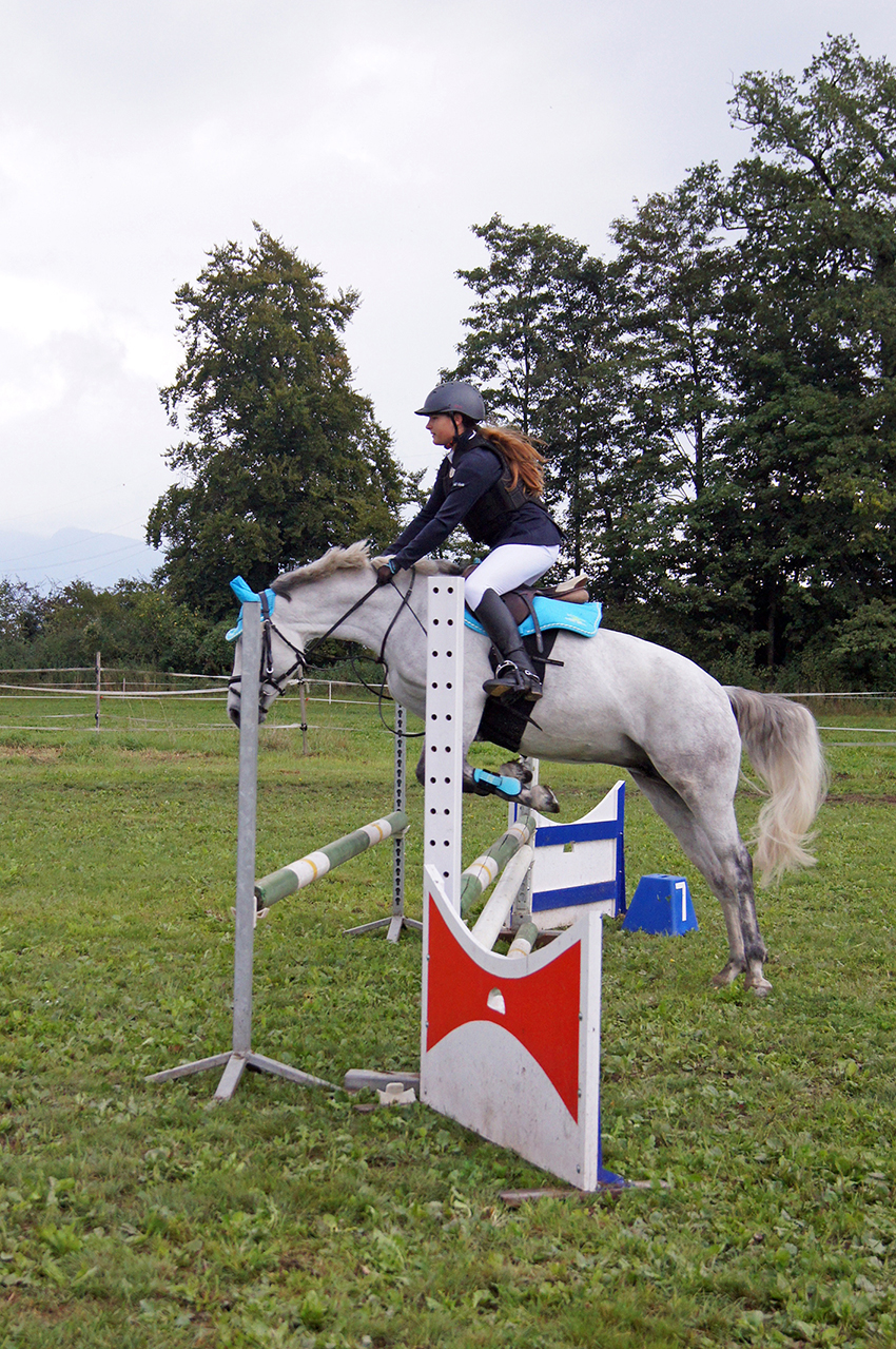 Nicole Stebler mit der Temperamentvollen VB Araberstute Moonlight und Melanie Winkelmann mit ihrem Bambi hatten je zwei 0-Fehlerrunden im B60 und B65. Aline Widmer und ihre Ponystute Balista hatten im B70 eine schöne 0-Fehlerrunde.